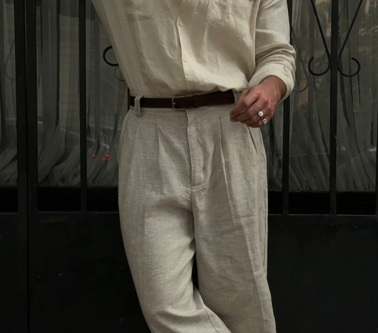 Apresentamos nossa calça confeccionada em tecido 100% linho: